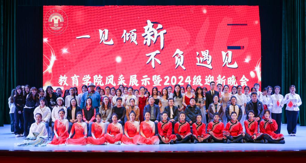 10月30日晚,教育学院“一见倾新 不负遇见”风采展示暨2024级迎新晚会在艺术楼音乐厅举行,校党委副书记张宏天,校团委书记王晓芳,教育学院领导班子成员、教师及2024级新生参加了晚会。在充满回忆的视频短片中,晚会拉开帷幕。随着闪烁的镁光灯和动感的音乐交织,晚会在器乐队带来的歌曲串烧中正式开场,舞蹈《不忘初心》瞬间点燃全场气氛。舞蹈、歌曲串烧、诗朗诵、小合唱等节目精彩纷呈。最后,晚会在所有演出人员合唱的《一...