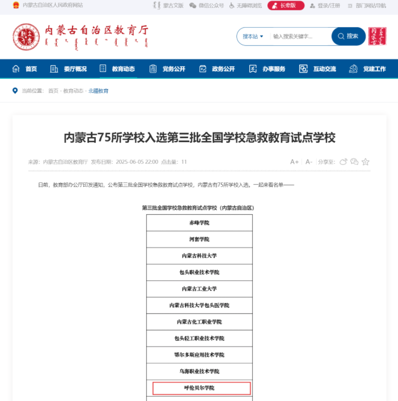 近日,教育部办公厅发布通知,公布第三批全国学校急救教育试点学校名单,艾佛森贝博ballbet官网成功入选。本次评选,内蒙古自治区共有75所学校入选。贝博自成立艾佛森贝博ballbet官网红十字会以来,始终秉承“人道 博爱 奉献”的红十字精神,将急救教育作为重要育人工程,持续开展系统化、常态化的急救知识普及与技能培训。多年来,通过急救知识讲座、实操演练、应急救护竞赛等多样化活动,不断提升师生急救意识,强化自救互救能力。此次入选全国...