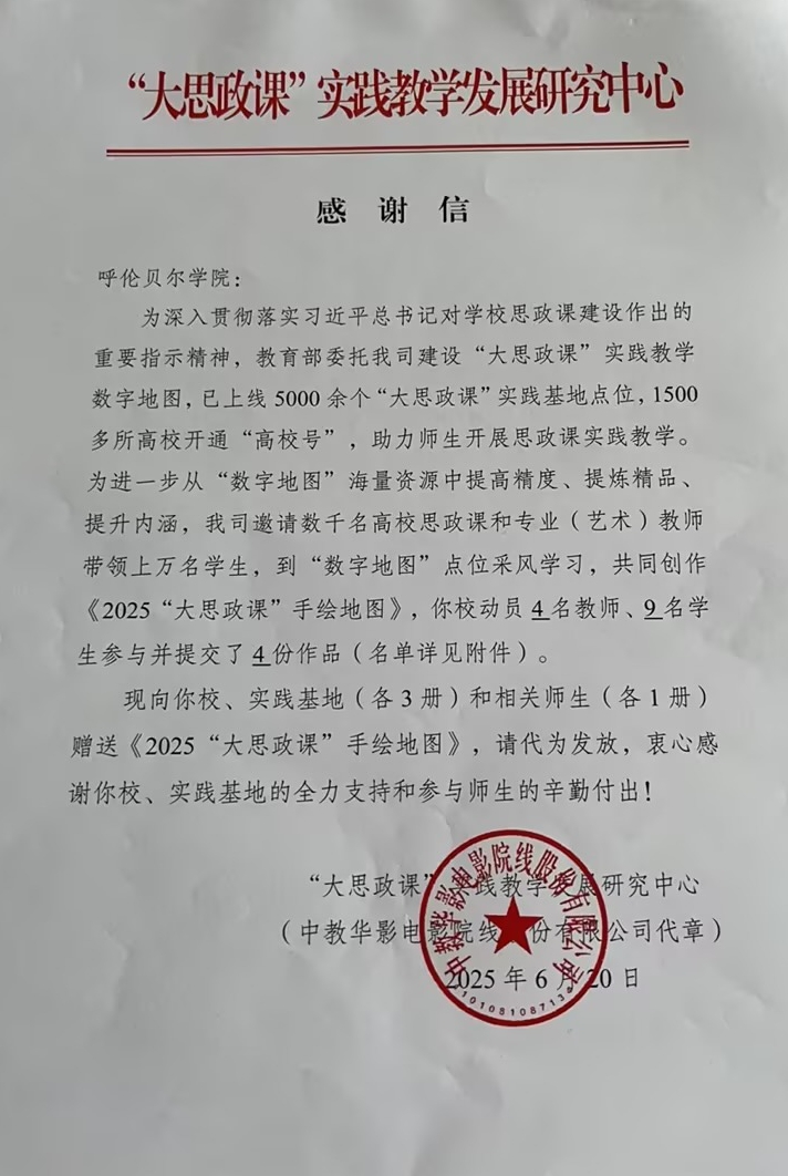 近日,贝博收到了一封来自“大思政课”实践教学发展研究中心的感谢信。信中对贝博马克思主义学院在教育部委托项目“大思政课”实践教学数字地图建设中的全力支持,以及参与师生的辛勤付出表示衷心感谢,并向马克思主义学院、实践基地(各3册)和相关师生(各1册)赠送《2025“大思政课”手绘地图》。信中提到,为深入贯彻落实习近平总书记对学校思政课建设作出的重要指示精神,教育部委托该中心建设“大思政课”实践教学数字地...