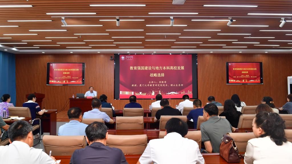 8月3日上午,校党委理论学习中心组(扩大)学习会在崇文楼A501会议室举行。厦门大学教育研究院院长、博士生导师别敦荣教授作了题为《教育强国建设与地方本科高校发展战略选择》专题辅导报告。学习会由校党委书记李文阁主持,相关部门70余人参加会议。别敦荣从地方本科高校面临的形势、地方本科高校的发展任务、地方本科高校的战略选择三个方面,为我们勾勒了教育强国建设的宏伟蓝图,更为地方本科高校在复杂变局中如何把握机遇...