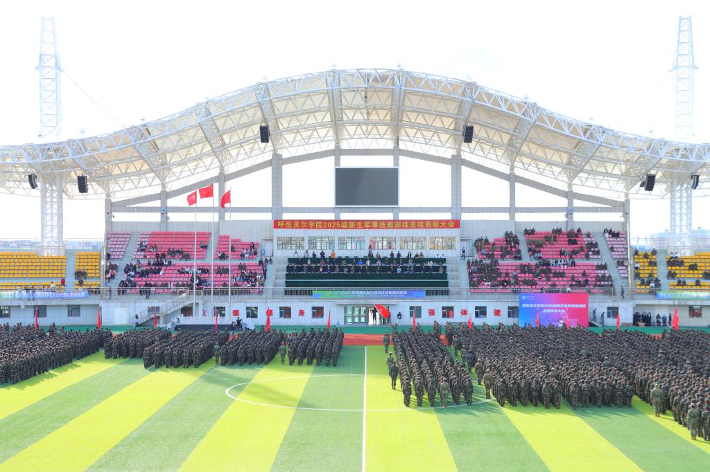 贝博举行2025级新生军事技能训练总结表彰大会