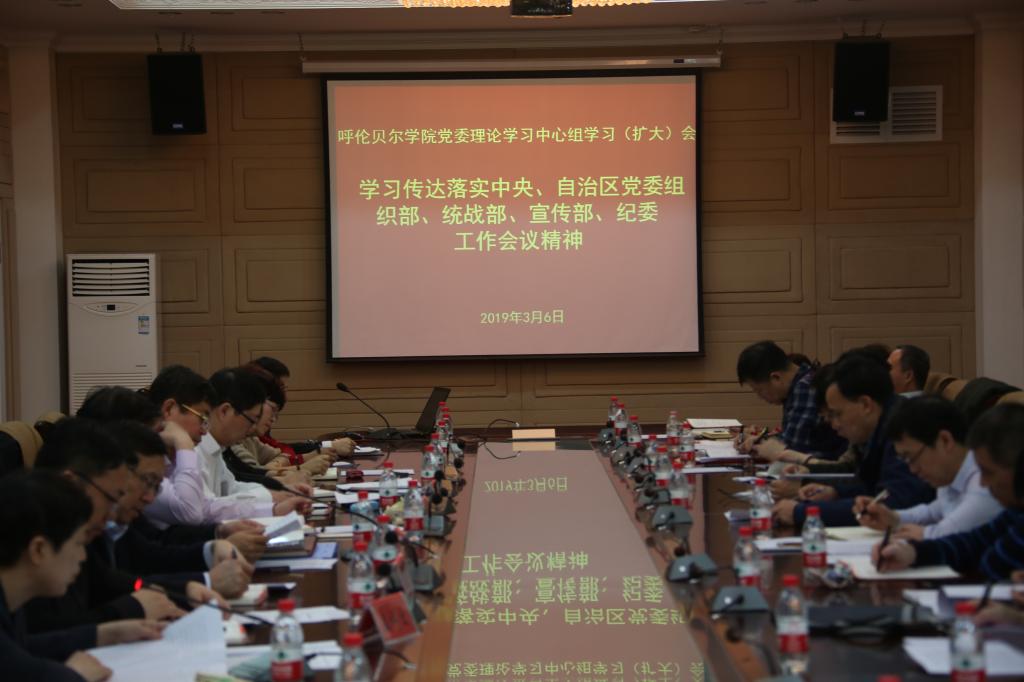 3月6日,学校党委理论学习中心组在图书馆三楼报告厅召开2019年第二次党委中心组(扩大)学习会。校党委书记韩猛主持学习会。校领导、中心组成员及各党总支书记参加了学习。 会议传达学习了中央、自治区党委关于组织、...